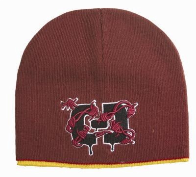 100% knitted acrylic outside,100% polyester fleece inside Front with mascot embroidery ,back with team logo embroidery