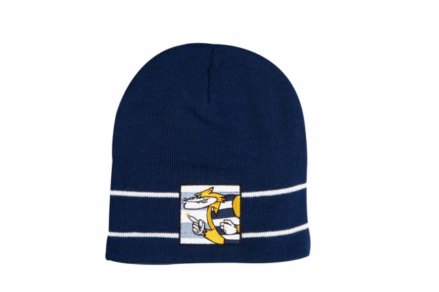 100% knitted acrylic outside,100% polyester fleece inside Front with mascot embroidery ,back with team logo embroidery